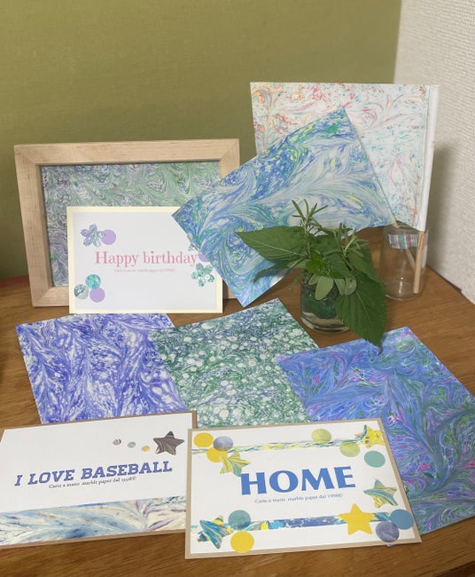 水の上に絵の具を浮かべて一枚一枚紙を染めて作られる美しいマーブルペーパー。本場フィレンツェの技法を体験。