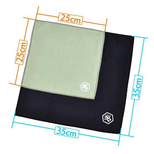 本製品は、ブラックカラー(35cm×35cm)とグリーンカラー(25cm×25cm)の『2サイズをセット』をご用意しました。