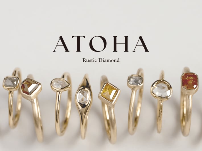 ATOHAは、ひとつひとつ異なる魅力を持つ 「ラスティックダイヤモンド」で仕立てる、 一点物のジュエリーブランドです。