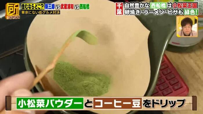 小松菜パウダーとコーヒー豆をドリップし、ガムシロップとレモン汁を加え完成させた「コマツナレモン」をスタジオで試飲した若槻さんは「さっぱりしてる!女子が好きかも」と太鼓判を押しました。