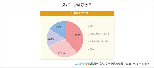 約7割の小中学生が、スポーツが「好き」または「どちらかといえば好き」と回答しました。