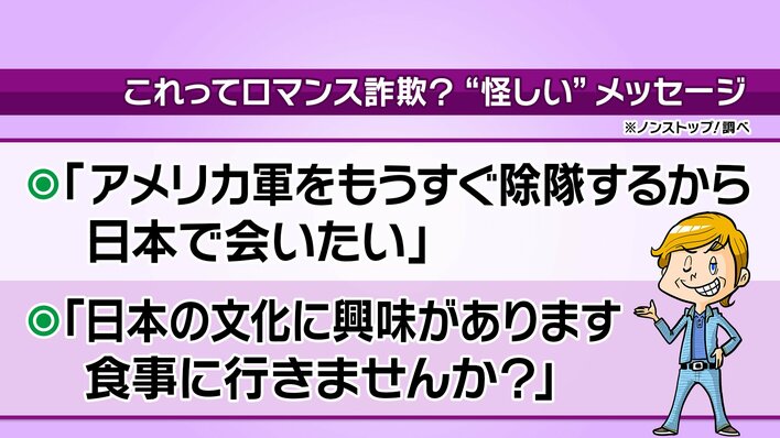 現在、急増中だというマッチングアプリやSNSを介した詐欺。特に、40〜60代の女性をターゲットにした詐欺が増えているといい、川村さんは「婚活しているのだが、『日本に遊びに行きたい』など筋肉隆々の男性からのロマンス詐欺の誘いばかり来る!」と窮状を訴えました。