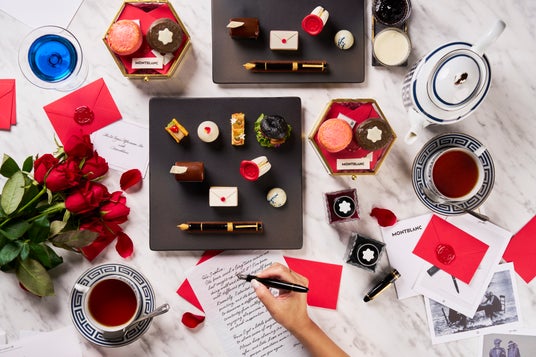 セント レジス ホテル 大阪とモンブランが贈る「セントレジス アフタヌーンティー with モンブラン」は、両者のクラフツマンシップから生み出されたコラボレーションです。「Love Letter」をテーマに、インクが紙に触れる瞬間のような繊細さや、思いを言葉にする静かな高揚感、そして、受け取る人の胸を打つ甘く深い余韻を堪能できます。万年筆や封筒を模した芸術性の高いスイーツや、愛にあふれるメッセージが込められたセイヴォリー。一品一品に愛の言葉を綴るような物語が込められています。