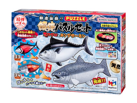 株式会社メガハウス(バンダイナムコグループ 本社:東京都千代田区)は遊んで学べる立体パズル「解体パズル」シリーズの新商品『鮮度抜群!!解体パズルセット 本マグロ&キングサーモン』を2025年9月中旬に発売致します。