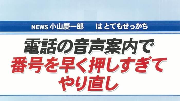 自他ともに認める「せっかち」だという小山。カップラーメンができあがるまでの3分を待ちきれずに早く食べ始めてしまったり、電話の音声案内では音声を待ちきれずに次々に番号を押してしまったりするなどの素顔が明らかになった。