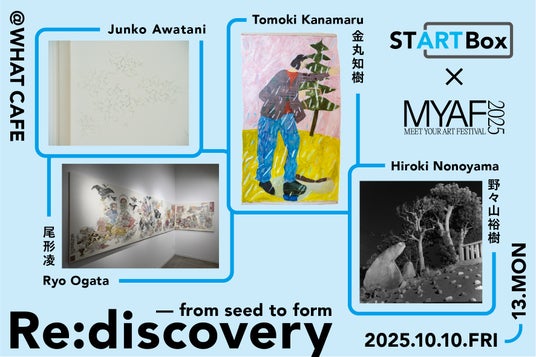 START BoxとMEET YOUR ART FESTIVAL 2025が共同開催する企画「Re:discovery - from seed to form」では、創作の場を求めるアーティストのために、都営住宅の空き店舗を創作の場として活用するSTART Boxで活動してきた4名の若手アーティストとともに、“再発見”をテーマに作品を発表します。文化や風土に根ざした記憶や身体感覚に触れながら、それらを現代的に再解釈・再編集する表現を通じて、創造の芽吹きの瞬間を提示します。