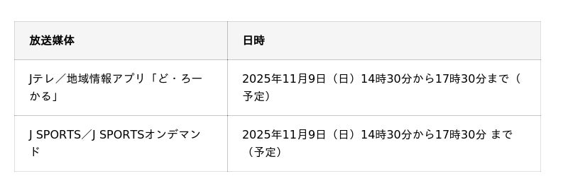 また、地域情報アプリ「ど・ろーかる」(無料)、J SPORTSオンデマンドでも生配信されます。