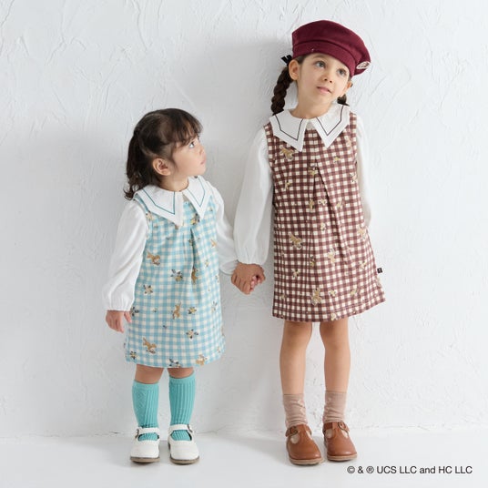 ■アイテム名:【おさるのジョージ X moimoln】【日本限定販売】【2点セット】ギンガムチェックワンピース&ブラウス
