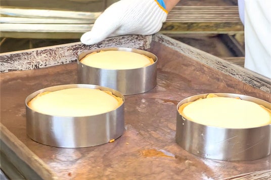 焼成前からすでに泡のように軽やかな特製チーズフィリングは、独自配合でつぶれないよう仕立てています。これを、一度香ばしく焼き上げたタルト生地に流し込み、最も美味しい瞬間を狙って火を通すのです。