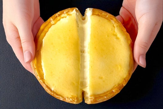 直径約12cmのタルト生地にたっぷり詰め込まれたオリジナルチーズフィリングは、一口頬張ると、まるで溶けるように広がり、同時に頬張ったザクザクのタルトを溺れさせるほど。しかし、タルトは溺れながらも力強く存在感を放ち、バターの香ばしさ、そしてザクザクとした歯ごたえをしっかりと残します。