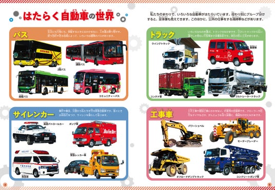 『はたらく自動車』では、街中を走る最新式のバスや、普段なかなか見ることができない工事車など、私たちの周りではたらく自動車を一挙に掲載。小学校の授業にも使える情報がたくさん詰まった図鑑です。
