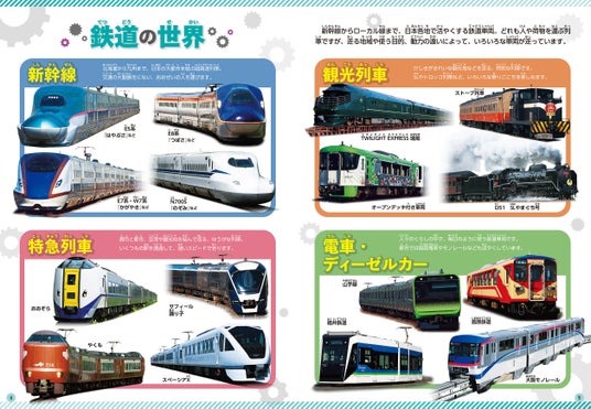 『鉄道』では、最新の超電導リニアや、大人気の新幹線はもちろん、日本全国を走る色鮮やかな観光列車などが大集合。様々な鉄道ネタが詰まった、大人でも夢中になってしまう1冊です。