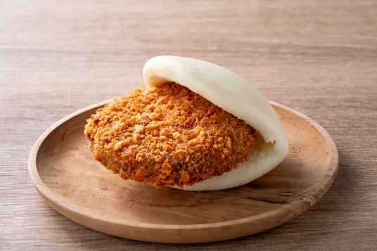 旨辛のミンチかつを中華パンで挟んだバーガー。