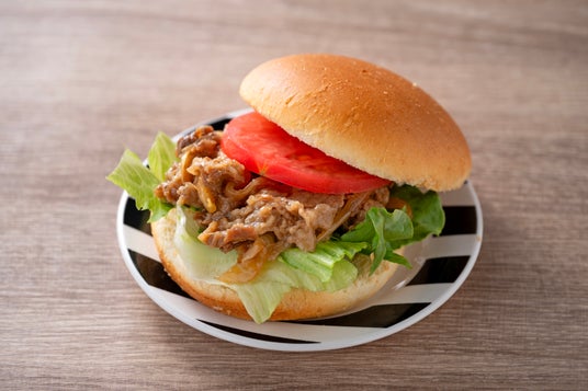 醤油ベースの甘口プルコギソースで仕上げた牛肉を挟んだバーガー。