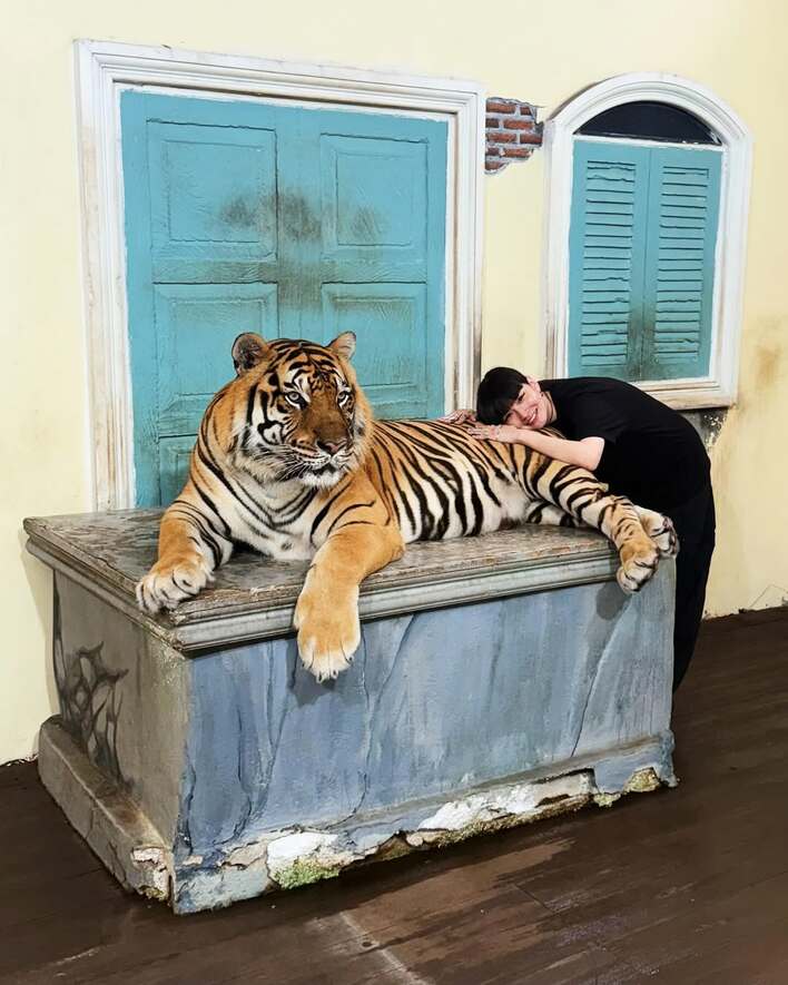 虎とのワイルドなゼロ距離ショットを公開し、ファンから「real??」「どこで会えるの??」など注目を浴びています。