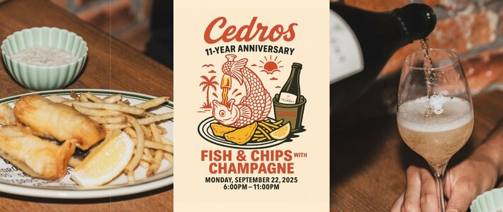 カリフォルニア州の南西海岸の想い出にインスピレーションを受け、旬の味覚を使用した魚介料理を提供する『CEDROS(シドロス)』を運営するEatMe株式会社(東京都渋谷区)は、レミーコアントロージャパン株式会社(東京都港区/ゼネラルマネージャー ザビエ・タロ)が取り扱うシャンパーニュのメゾン テルモンと共に、シドロスのオープン11周年を祝したアニバーサリーパーティーを2025年9月22日(月)に開催いたします。