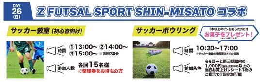 サッカーフェスタ:https://mitsui-shopping-park.com/lalaport/shinmisato/event/3169600.html