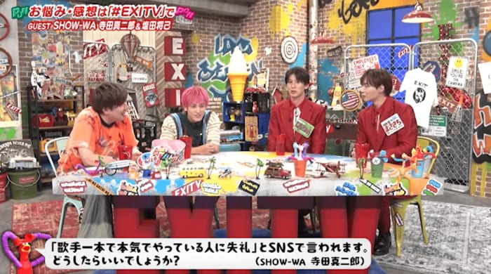 EXITがゲストとリラックスしたトークを繰り広げる『EXITV』(フジテレビ)。10月22日の放送では、9月4日にメジャーデビューを果たしたSHOW-WAから、グループ最年長と最年少コンビの寺田さんと塩田さんをゲストに迎えてトークを展開しました。