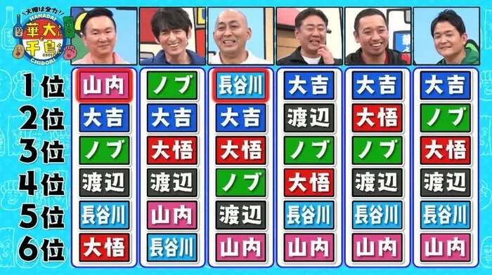 ヒントチャンス(誰か1人、上位なのか下位なのかがわかる)を使い、大悟さんが下位(4~6位)であることが判明。