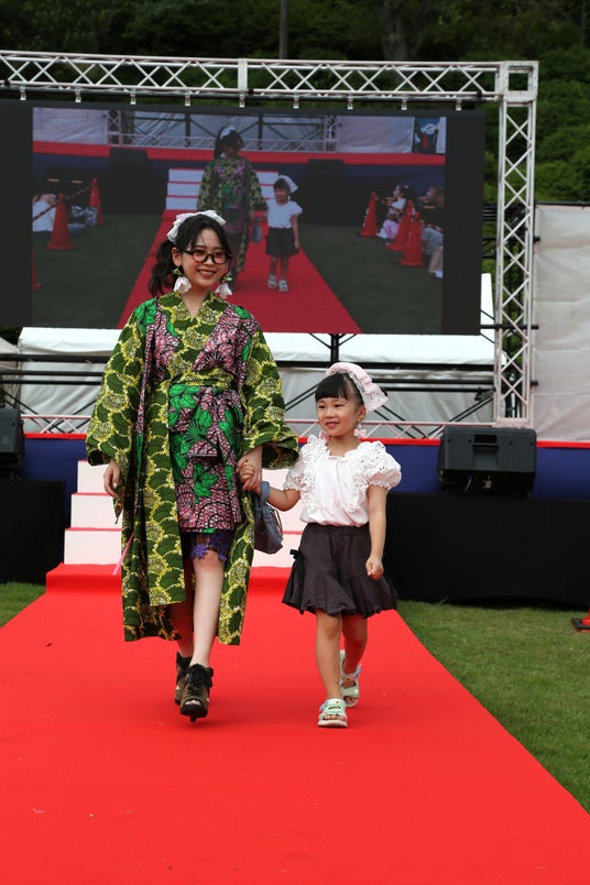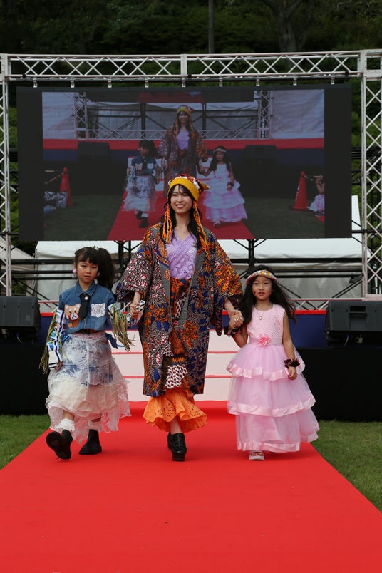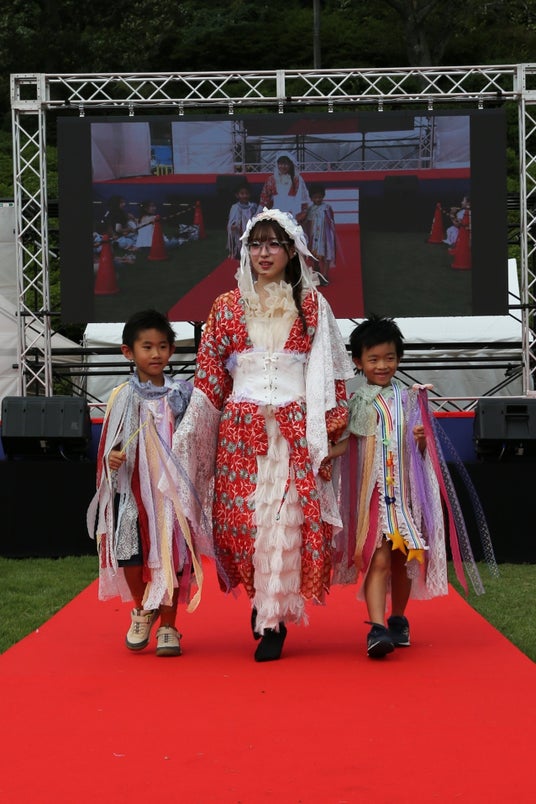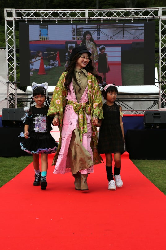 今回は、「つなぐ、つむぐ、未来」をテーマに、福井文化服装学院の学生が鯖江市内の繊維産業から排出される端材を活用し、自由な発想で制作したサステナブルなアクセサリーや、鯖江ならではの「メガネ」を華やかな衣装に取り入れ、TGCでも人気のモデルがサステナブルなファッションを披露しました。フィナーレでは、古着やお下がりなどを活用した個性あふれる衣装に身を包んだ鯖江市在住のキッズモデルとともに再びランウェイに登場。会場からは「かわいい~!!」と大歓声が沸き起こり、環境に配慮したファッションショーとして注目を集めました。