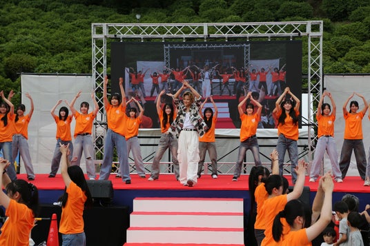 今回で3回目の出演となるTETSUYAは、西山公園に出店している自身プロデュースの「AMAZING COFFEE」も訪問。園内の人気者・レッサーパンダにちなみ“レッサーパンダラテ”を飲んだという岩谷は、「レッサーパンダみたいにかわいく踊っていきましょう!」と呼びかけました。その後「WON’T BE LONG」やTHE RAMPAGEの人気ナンバー「New Jack Swing」などが披露され、EXPG STUDIO NAGOYAの生徒も加わった圧巻のパフォーマンスで、会場は熱気に包まれました。
