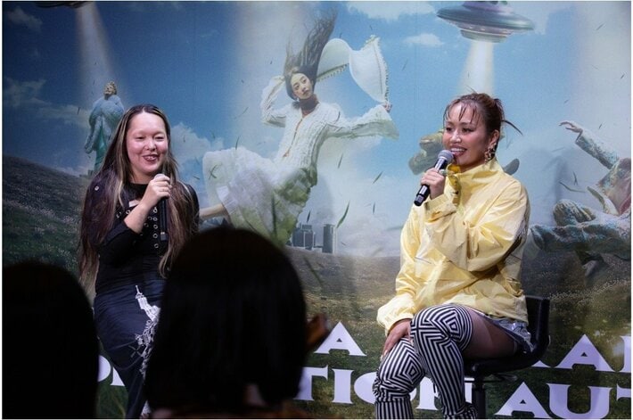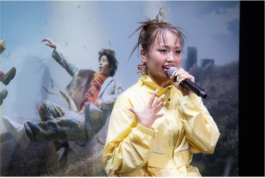 MC:「お二人にお話を伺っていきたいと思います。まずはRIEHATAさんに質問です。数々のステージ衣装を手掛けているRIBBONさんについて、『ここがすごい!』と思うところはどんなところですか?」RIEHATA:「最近は踊って歌うアーティストが増えている中で、RIBBONさんは本当に多くのアーティストのスタイリングを手掛けている。それが本当にすごいですよね。」