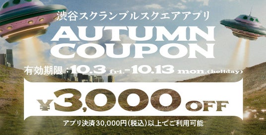 渋谷スクランブルスクエアの全ショップで利用可能な「AUTUMN COUPON」3,000円をプレゼントします。