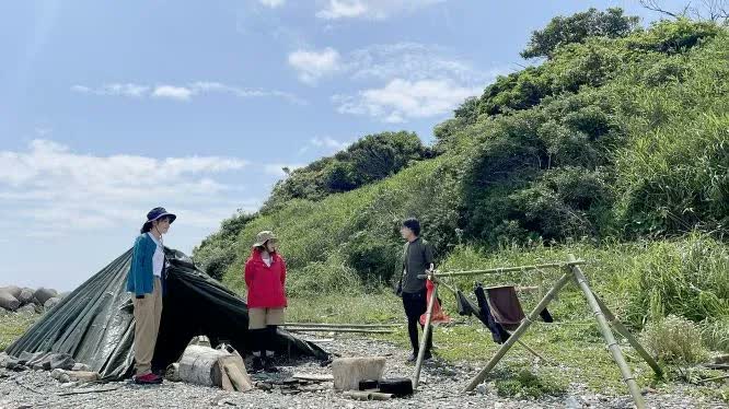 いきなりのサバイバル体験に、大久保さんも悪戦苦闘。