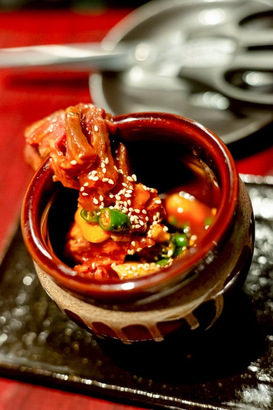 鮮やかに盛り付けられたお肉がテーブルを華やかに彩ります。