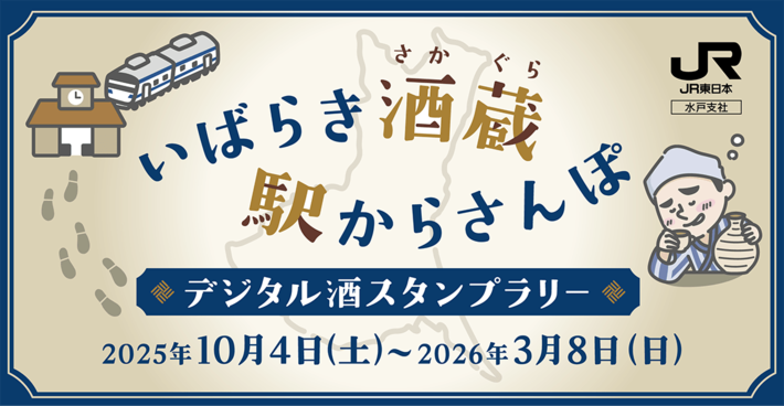 ◎2025年10月4日(土)より、「~いばらき酒蔵(さかぐら) 駅からさんぽ~デジタル酒スタンプラリー」を開催します。スタンプラリー期間中に、対象の酒蔵や対象駅でエキタグを獲得するとオリジナルノベルティや抽選で素敵な賞品をプレゼント!ぜひこの機会に、いばらきの鉄道の旅をお楽しみください!