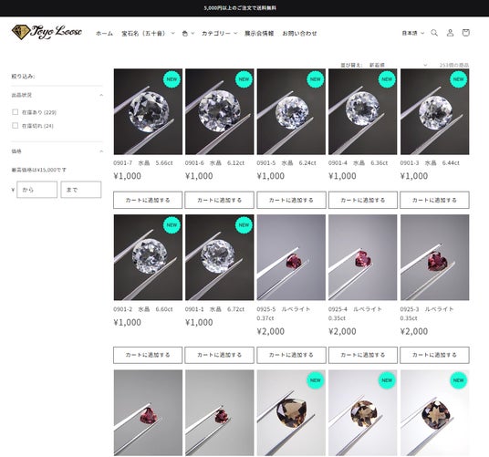 2024年11月29日にはオンラインストアをオープンいたしました。現在約800点数もの商品が出品されております。1石あたり2~300円の宝石もあり、展示会と同じく、お客様のお手にとって頂きやすい価格帯でルースを販売しております。