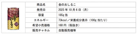 ダイドードリンコ株式会社(本社:大阪市北区、代表取締役社長:中島 孝徳)は、2025年秋冬の新商品として、「金のおしるこ」を10月6日(月)より発売いたします。