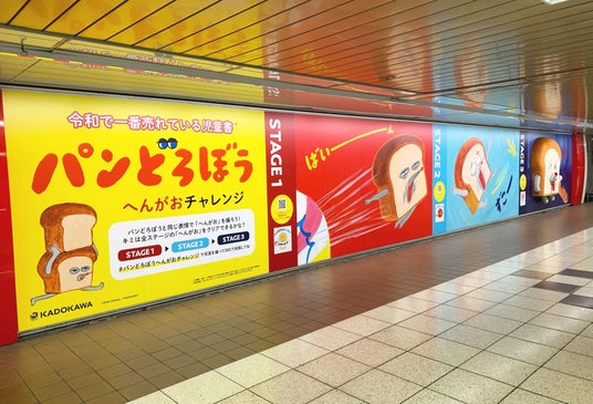 株式会社KADOKAWA(東京都千代田区)は、絵本『パンどろぼうとスイーツおうじ』の刊行を記念し、大型広告を新宿駅地下「メトロプロムナード」に掲出しました。
