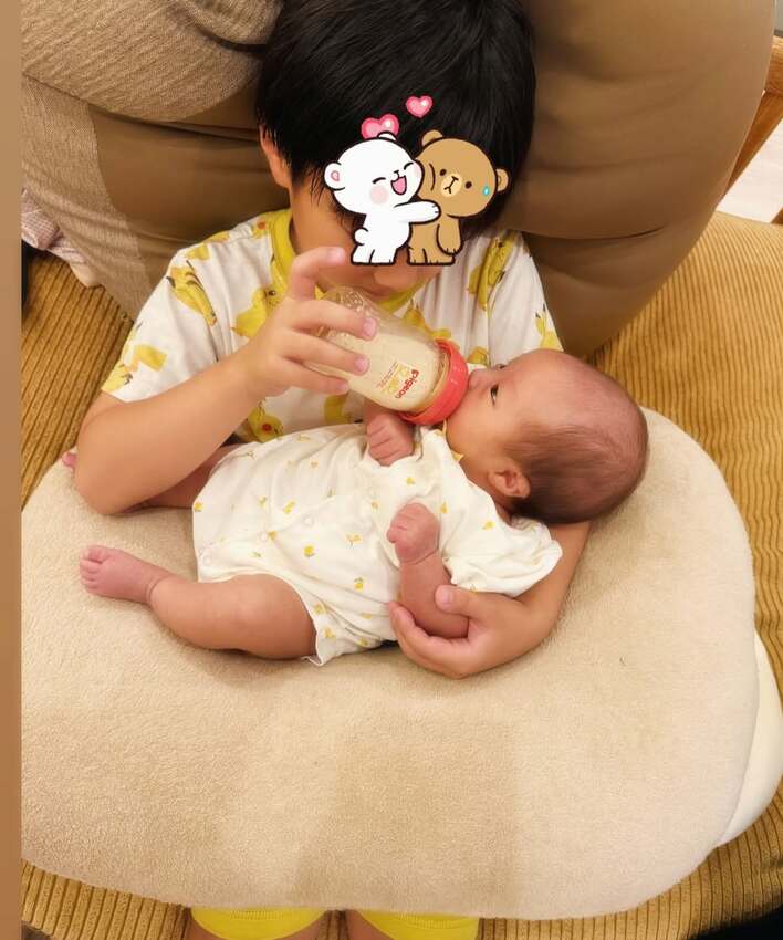 6歳の三男・幸空くんが、夢空ちゃんにミルクをあげています。