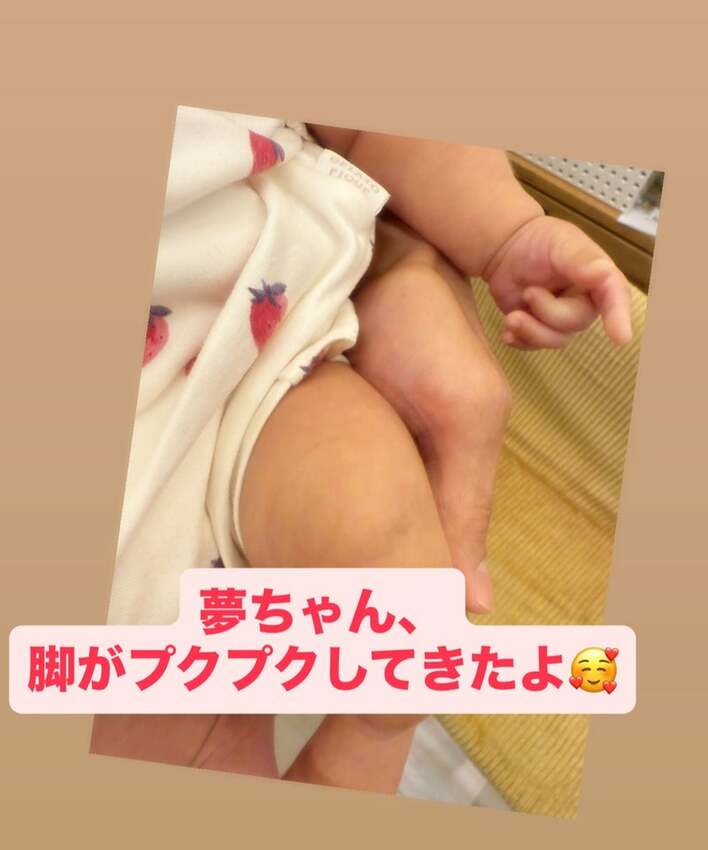 また、ブログでは「夢ちゃん、脚がプクプクしてきたよ」と、抱っこされた夢空ちゃんの足を披露。