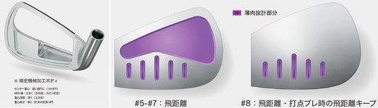 3.打点付近の反発向上や極薄フォージドフェースの採用などによる飛距離性能アップ