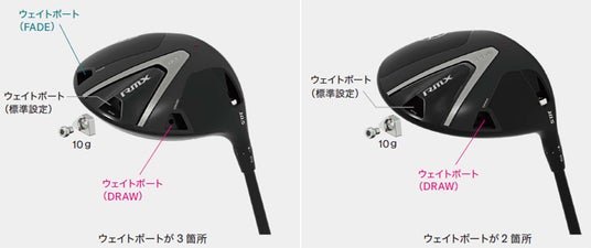 『RMX DD-1』は、ソールウェイトのポジションをFADE(フェード)/STD(スタンダード)/DRAW(ドロー)の3か所から選び、つかまり具合を調整可能です。『RMX DD-2』はSTD/DRAWの2か所から選べます。また、標準品に装着されている10gのウェイトの他、別売りのウェイト(12g、8g、6g、4g)も用意しています。