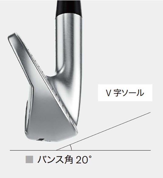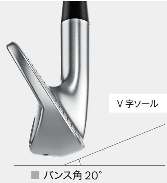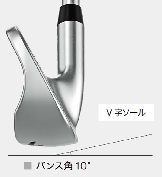 ゴルファーがスイングした際のヘッドの軌道やインパクト時のロフトの状態に関するデータを分析し、抜けの良いヘッド挙動に導くリーディングエッジを削ったV字のソール形状をモデル別に採用しました。さまざまなライの状況でも刺さりにくく跳ねにくい、爽快な抜け感を実現しています。