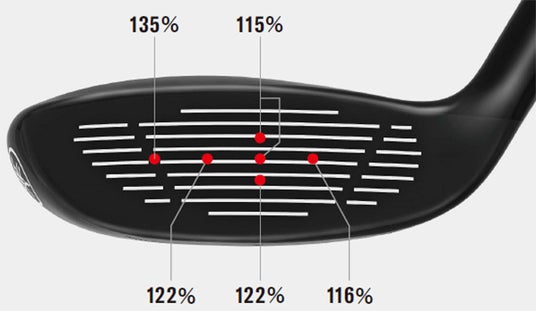 ユーティリティは、フェース素材へのマレージング455の採用と薄肉・偏肉化フェースにより、広範囲にかけての反発性能を向上しています。また、ターゲットを定めやすいつかまり顔のヘッド形状とサイズアップしたヘッド外形で弾道の安定性も向上させました。フェアウェイウッド同様、フェース粗さを強化し、スコアラインの細かなピッチでスピンの安定を図っています。
