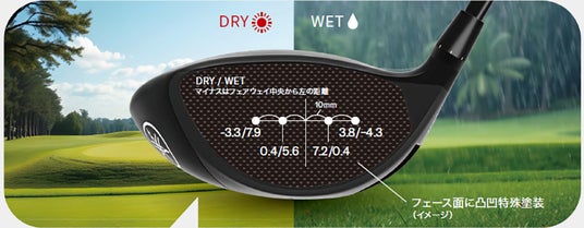 ヘッドスピード40~44m/secのゴルファーが効果的なギア効果を得られるように設計された新バルジデザインにより、打球の方向安定性が向上しました。また、特殊な素材を塗布したフェース面の凹凸設計により、雨天などの条件に左右されないスピンの安定性を生み出します。
