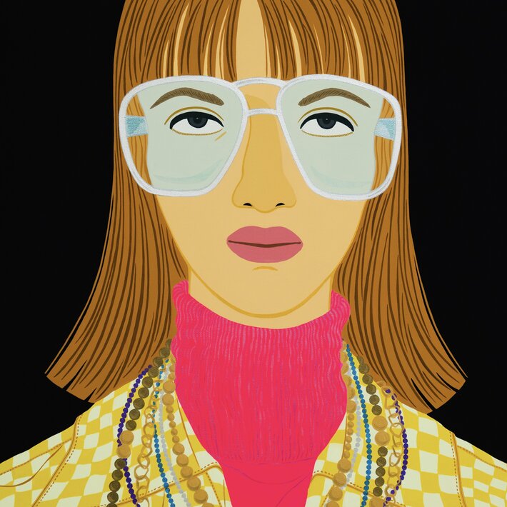 ビビッドピンクのタートルネックを纏った女性が印象的に描かれたデザイン。裏面に入ったAZUSA IIDAのサインもポイント。