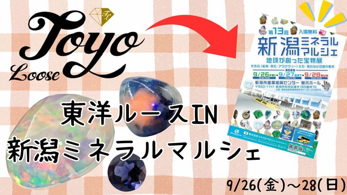 「笑顔創造」が企業理念の株式会社東洋(本社:埼玉県桶川市 代表取締役/中村秀夫 以下、当社)が運営する、研磨やカットが施された指輪などの、ジュエリー製品に加工される前の宝石「ルース(裸石)」を扱う、日本最大級のルースショップ「東洋ルース」は、9月26日(金)より開催の「第13回 新潟ミネラルマルシェ」へ出展いたします。