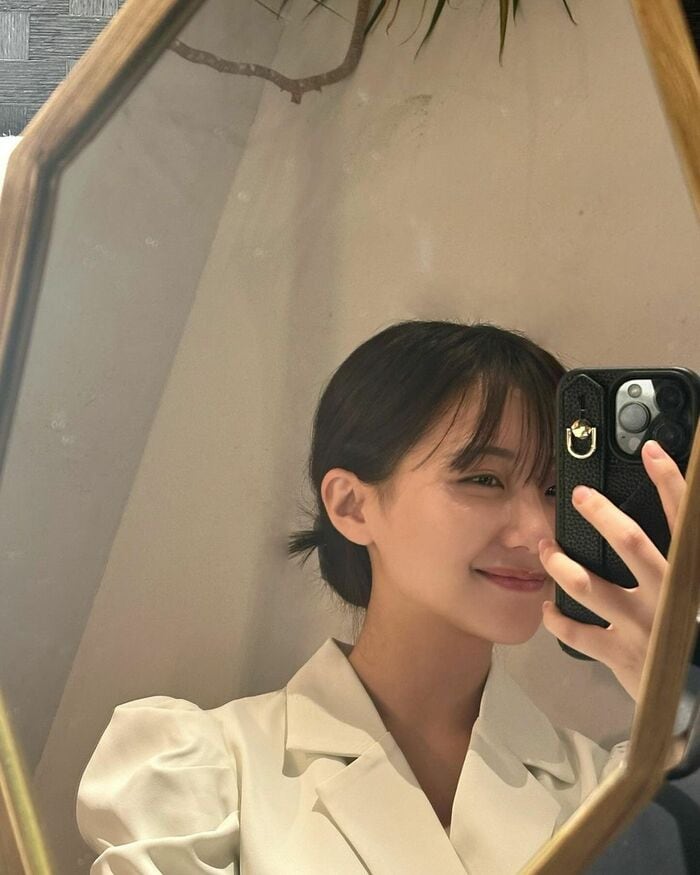 他にも、鏡越しに微笑みながらスマホで自撮りする様子や・・・。