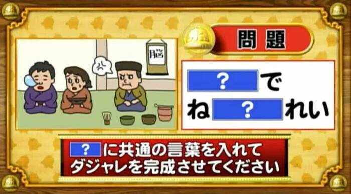 最初は「脳ミングアップクイズ」から、ダジャレ穴埋めの問題。「?」に共通する言葉を入れてダジャレを完成させてください。