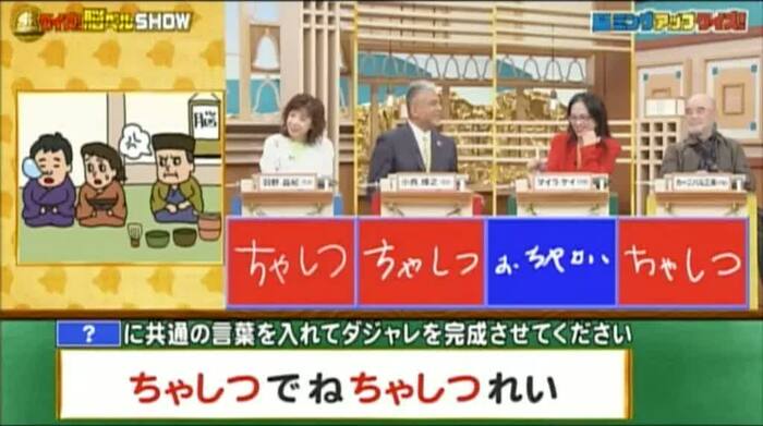 正解は「ちゃしつ(茶室で寝ちゃ失礼)」。羽野さん、小西さん、三浦さんの3人が正解。