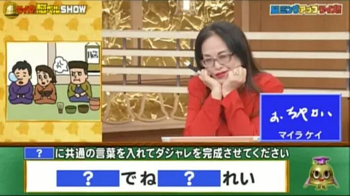 今回の解答者は、女優の羽野晶紀さん(53)、俳優の小西博之さん(62)、歌手のマイラ・ケイさん(70)、振付師のカーニバル三浦さん(76)の4名です。