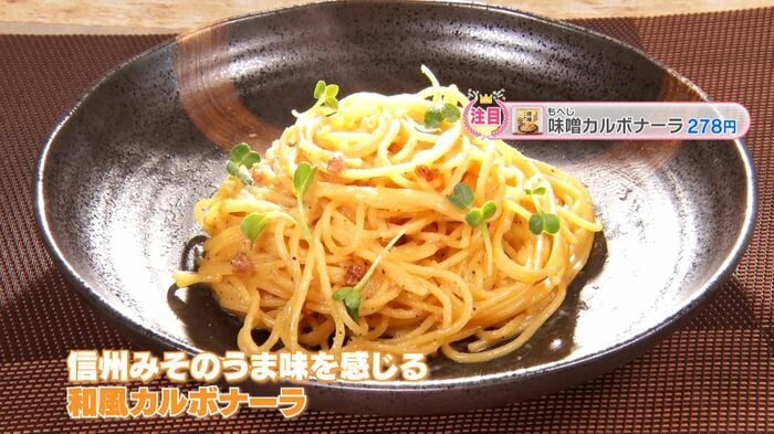 チーズの香りと卵のコクに、みそのうまみがマッチした和風カルボナーラがあえるだけで簡単に楽しめます。