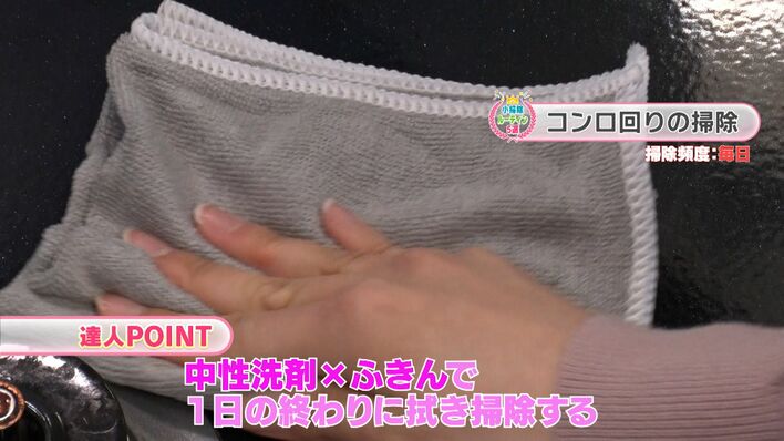 油汚れはその日のうちであれば簡単に落とせるので、中性洗剤とふきんを使い1日の終わりに拭き掃除を毎日するのがオススメです。