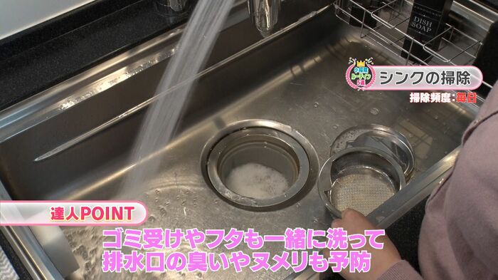 ゴミ受けやフタも一緒に洗うことで排水溝の臭いやヌメリも予防!
