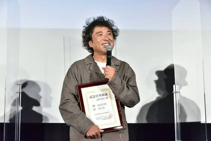 ムロさんには、「今後の活動を邁進させる節⽬の⽇として、本⽇6⽉24⽇を『ムロツヨシの⽇』として認定することをここに証明致します」などと書かれた認定証が贈呈されました。